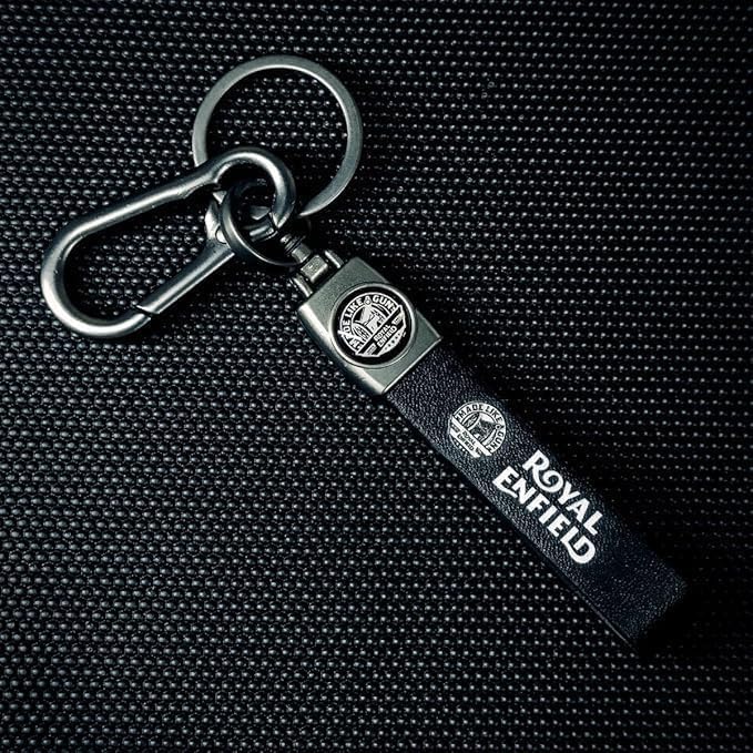 Premium Leather Metal Keychain with Keyring for Royal Enfield, Black