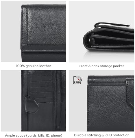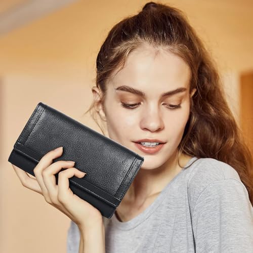 Sponsored Ad - Women's Leather Wallet - RFID Blocking Wallet - Ladies Clutch Hand Purse With Card Holder Slots (Black Nappa LW06)