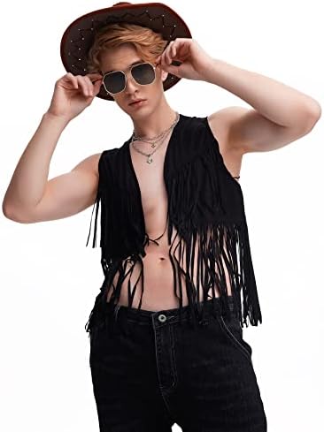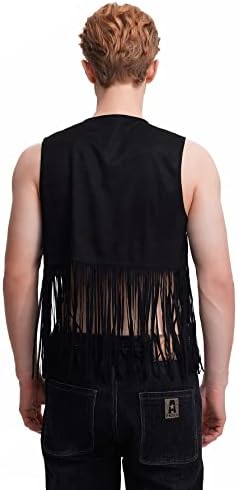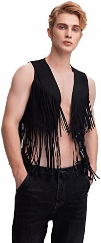 Men's Open Front Sleeveless Fringe Hem Party Club Jacket Vest Outerwear