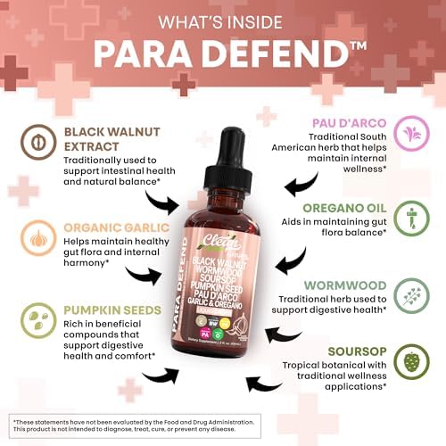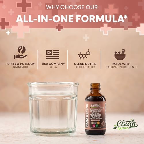 Sponsored Ad - para Defend Wormwood Black Walnut Cleanse for Humans Drops Liquid Soursop Garlic Pumpkin Seed PAU D'Arco Oil of Oregano Turmeric Berberine Neem Extract Hull Bark Tincture by Clean Nutra