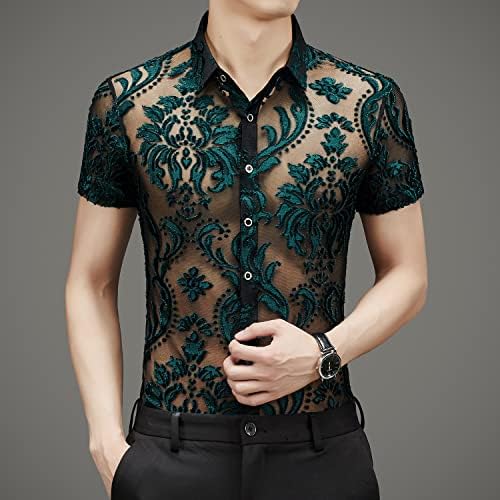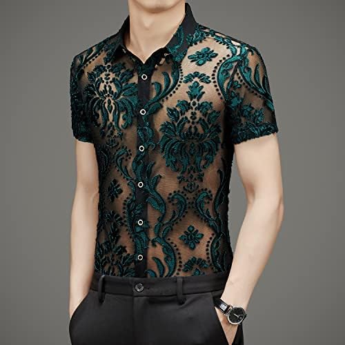 Men Women See Through Shirts Sexy Short Sleeve Night Club Fishnet Lace Shirt