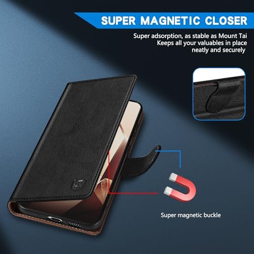 for OnePlus 13R Wallet Case with [RFID Blocking] Card Slot Kickstand Magnetic Closure Leather Flip Fold Protective Phone Case for OnePlus 13R Case Wallet(Black-6.78 inch)